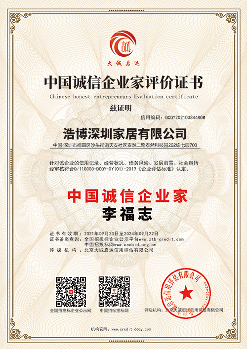 浩博沙發是三體系認證家具企業,同時獲得多項行業科學技術突出貢獻獎,申請產品**幾十項